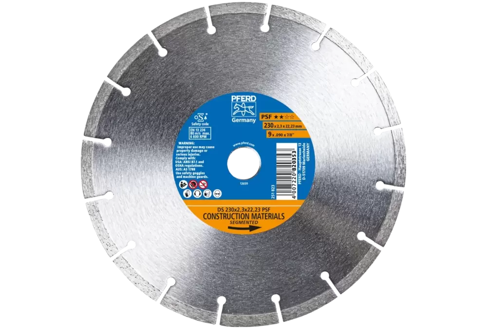 Diamentowe ściernice do przecinania PFERD produkowane są przy zachowaniu najwyższych standardów jakości i bezpieczeństwa. Gwarantują optymalne rezultaty pracy i umożliwiają ekonomiczną obróbkę różnych materiałów takich jak: beton, beton płukany, klinkier, twardy kamień, granit oraz inne materiały sypkie. Paleta produktów oferuje optymalne narzędzie do każdego zadania obróbczego., Uniwersalne narzędzie z okładziną segmentową. Do agresywnego, szybkiego cięcia. Wysokie właściwości cięcia i długa żywotność.