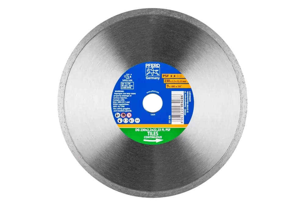 Diamentowe ściernice do przecinania PFERD produkowane są przy zachowaniu najwyższych standardów jakości i bezpieczeństwa. Gwarantują optymalne rezultaty pracy i umożliwiają ekonomiczną obróbkę różnych materiałów takich jak: beton, beton płukany, klinkier, twardy kamień, granit oraz inne materiały sypkie. Paleta produktów oferuje optymalne narzędzie do każdego zadania obróbczego., Wysoce wydajne narzędzie z okładziną ciągłą. Do cięcia, bez kruszenia materiału., Wykonanie z zamkniętą krawędzią nadaje się do wykonywania bardzo precyzyjnych cięć, np. płytek lub glazury.