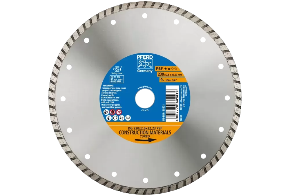 Diamentowe ściernice do przecinania PFERD produkowane są przy zachowaniu najwyższych standardów jakości i bezpieczeństwa. Gwarantują optymalne rezultaty pracy i umożliwiają ekonomiczną obróbkę różnych materiałów takich jak: beton, beton płukany, klinkier, twardy kamień, granit oraz inne materiały sypkie. Paleta produktów oferuje optymalne narzędzie do każdego zadania obróbczego.