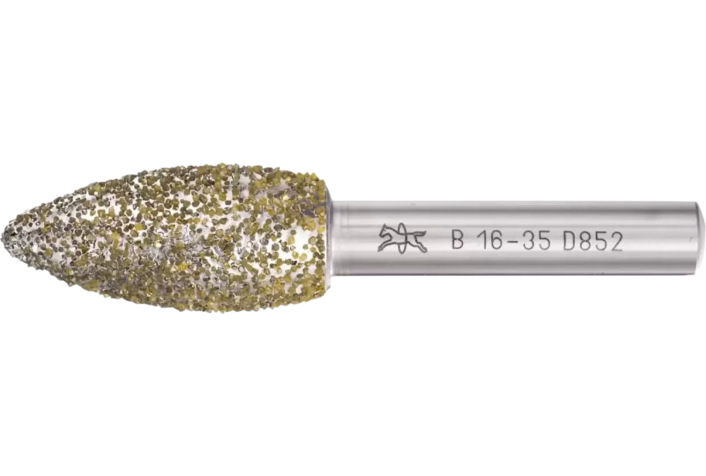 Diamentowa ściernica trzpieniowa płomieniowa 16 × 35 × 8 mm D852 do szlifowania żeliwa szarego i sferoidalnego