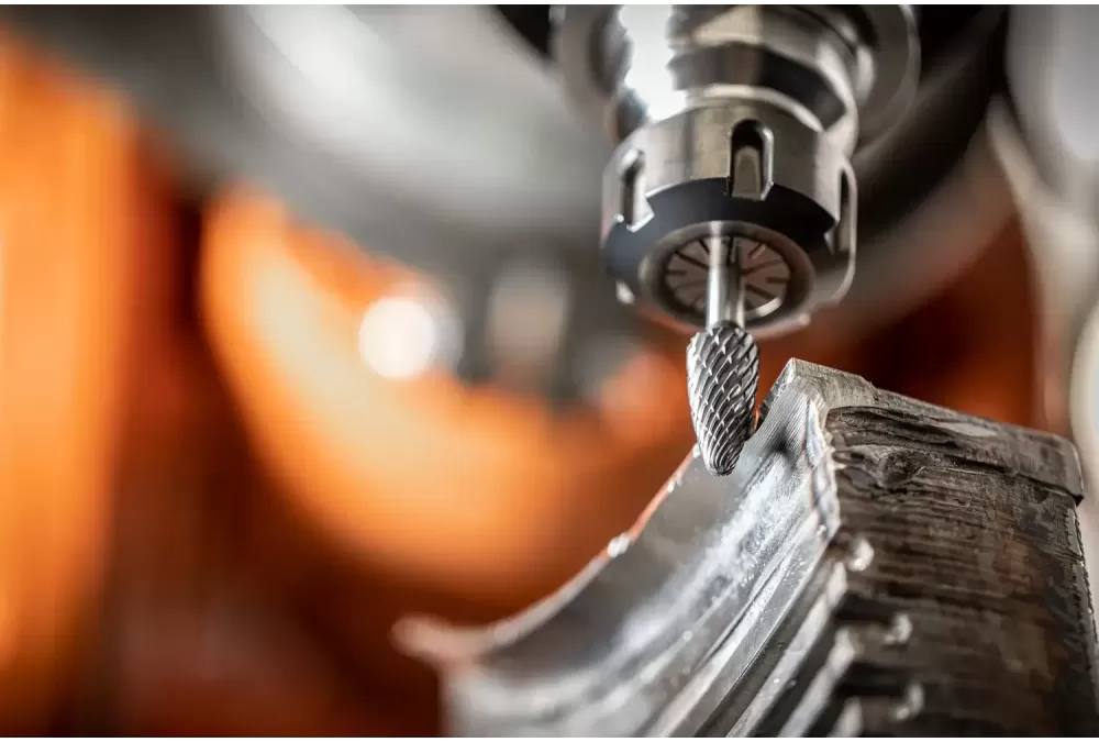 W miarę możliwości, aby uniknąć wibracji, należy używać wysokowydajnych napędów z elastycznie ułożyskowanym wrzecionem., Należy przestrzegać zaleceń dotyczących liczby obrotów., Gdy dojdzie do kontaktu narzędzia z obrabianym materiałem, można odpowiednio zwiększać liczbę obrotów., W celu ekonomicznego wykorzystania trzpieni frezarskich praca powinna odbywać się w górnym zakresie prędkości obrotowej / prędkości skrawania. W napędach o mocy od 300 W należy stosować trzpienie frezarskie o średnicy trzpienia 6 mm.