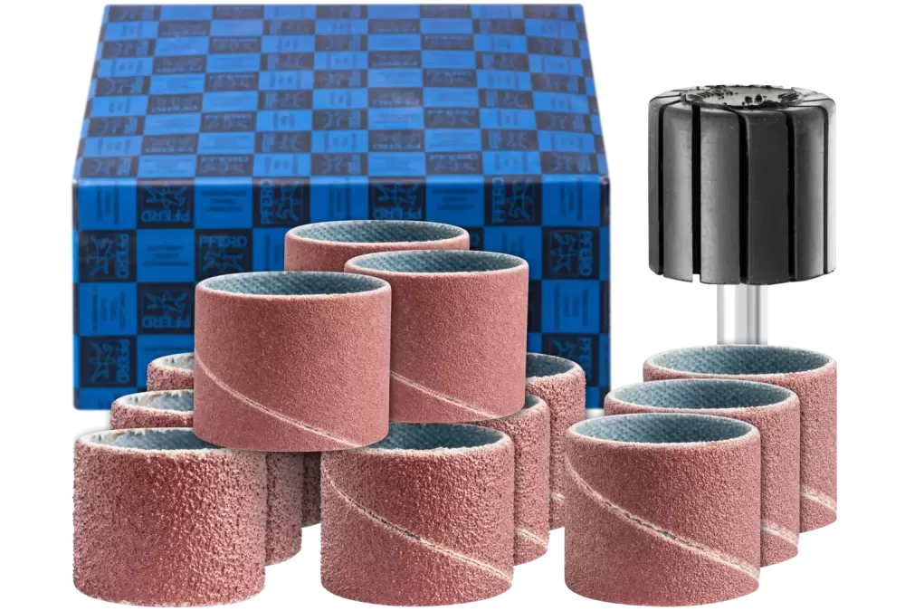 Zestaw opasek ściernych 13-częściowy Korund Ø 22 × 20 mm A60,80,150,240 z uchwytem trzpień Ø 6 mm
