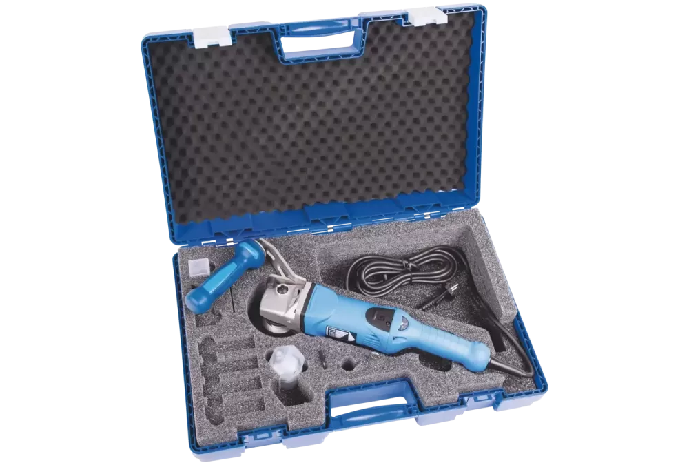 Napędy elektryczne do prac uniwersalnych. W zależności od wielkości i wagi oferują dużą moc. Nadają się zwłaszcza do użycia z narzędziami ściernymi, wymagającymi stałej liczby obrotów. Napędy elektryczne można stosować niemal wszędzie. Wykorzystywane są w wielu branżach i różnych procesach produkcyjnych. Bezstopniowa elektroniczna regulacja obrotów umożliwia zastosowanie różnych narzędzi na pojedynczym napędzie., Napęd elektryczny z bezstopniową regulacją prędkości obrotowej bardzo dobrze nadaje się do szybkiej i czystej obróbki krawędzi. Włącznik/wyłącznik może zostać zablokowany. Napęd oraz odpowiednie akcesoria mogą być przechowywane w torbie transportowej.
