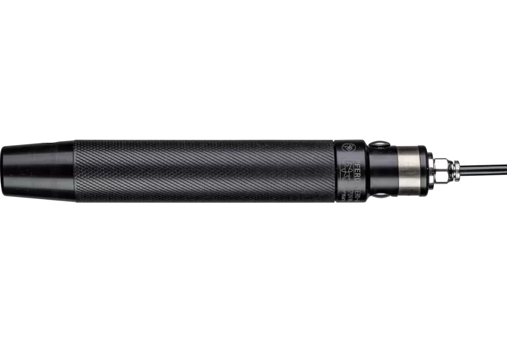 Napęd nadaje się do pilników z trzpieniem okrągłym., Dzięki wyprowadzeniu powietrza wylotowego do przodu, podczas pracy może wydmuchiwać do przodu usunięte zanieczyszczenia., Spokojna praca i wysoka precyzja., Bardzo niskie wartości wibracji., Napęd w wersji z zaworem suwakowym jest przystosowany do pracy ciągłej.