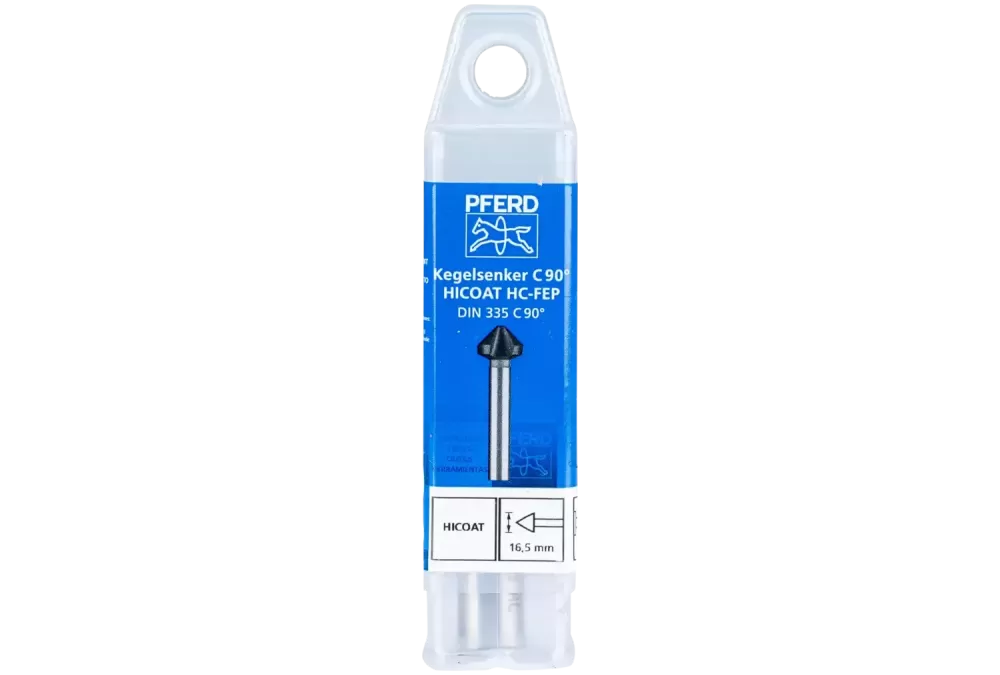 Pogłębiacze stożkowe PFERD charakteryzują się wyjątkowo ostrymi, prawoskrętnymi krawędziami tnącymi, które osiągają bardzo dobre wyniki nawet przy niskiej prędkości pracy. Ponadto pogłębiacze stożkowe z powłoką HICOAT cechuje wysoka twardość na gorąco i odporność na utlenianie. Dlatego mogą być stosowane również na twardych materiałach bez dodatku chłodziwa., Wysokowydajne narzędzia pogłębiające o kącie pogłębiania 90° do pogłębiania wkrętów 90° do szczególnie twardych i wytrzymałych materiałów, takich jak stal stopowa i wysokowytrzymała oraz stal nierdzewna. W celu bezpiecznego przenoszenia momentu obrotowego pogłębiacze stożkowe o średnicy od 28 mm posiadają trzpień z trzema powierzchniami. Dzięki powłoce HICOAT HC-FEP charakteryzują się wysoką twardością i odpornością na zużycie. Są odporne na działanie temperatury i charakteryzują się szczególnie długą żywotnością. Mogą być stosowane w obszarach wysokiej szybkości pracy oraz bez chłodzenia oraz środków smarnych.