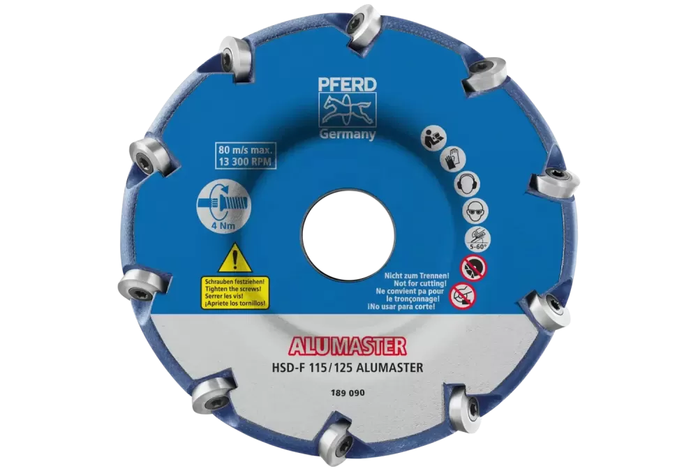 Nowoczesny dysk High Speed Disc ALUMASTER to wyjątkowe narzędzie o wyjątkowo wysokiej wydajności skrawania. Narzędzie znakomicie nadaje się do obróbki aluminium, ponieważ nie powoduje powstawania szkodliwych i wybuchowych pyłów. Narzędzie składa się z płytek skrawających ze specjalnie zaprojektowanych płytek ze stopu twardego mocowanych do dysku High Speed Disc., Specjalne narzędzie do obróbki stopów aluminium przy użyciu szlifierki kątowej. Wersja HSD-F do zastosowań płaskich.