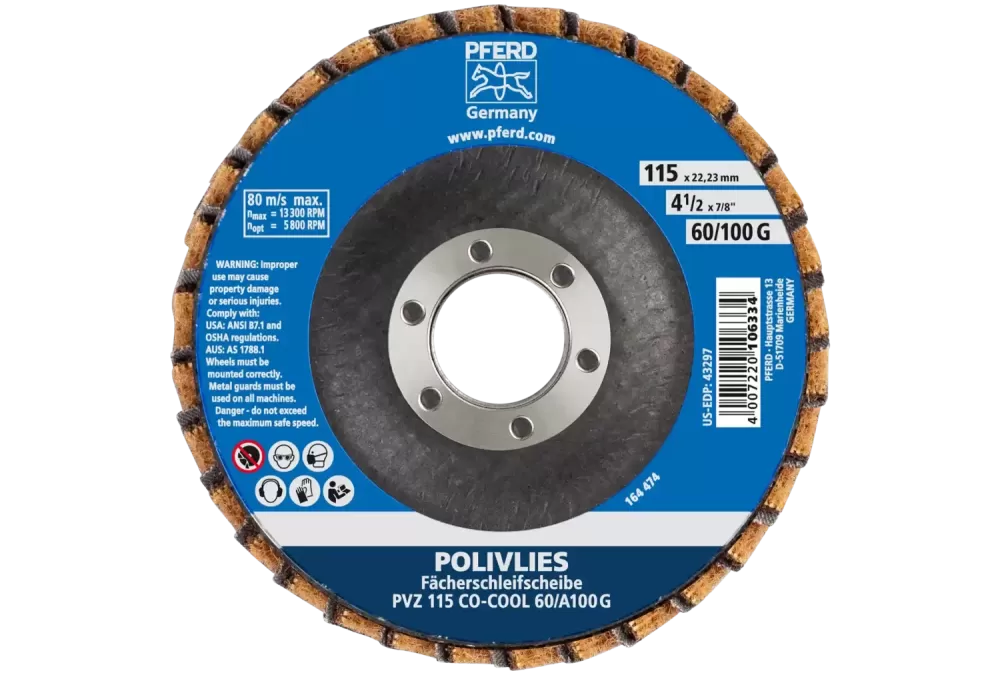Ściernica włókninowa POLIVLIES PVZ ceramiczna Ø115 mm otwór 22,23 mm CO-COOL60/A100 G do szlifu dokładnego