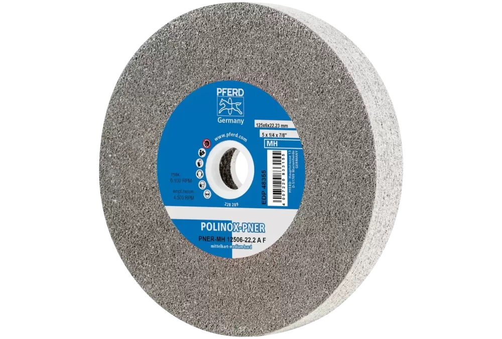 Dysk z włókniny prasowanej POLINOX PNER Ø 150 × 25 mm do otworu Ø 25,4 mm średnio twardy A drobnoziarnisty do wykańczania