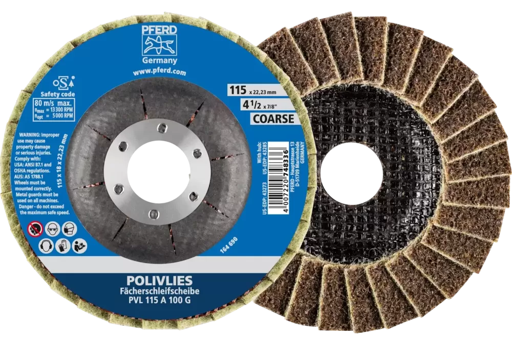 Ściernica włókninowa POLIVLIES PVL Korund Ø115 mm otwór 22,23 mm A100G do szlifu dokładnego