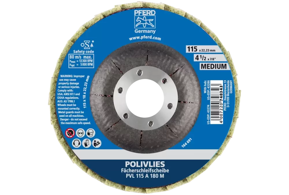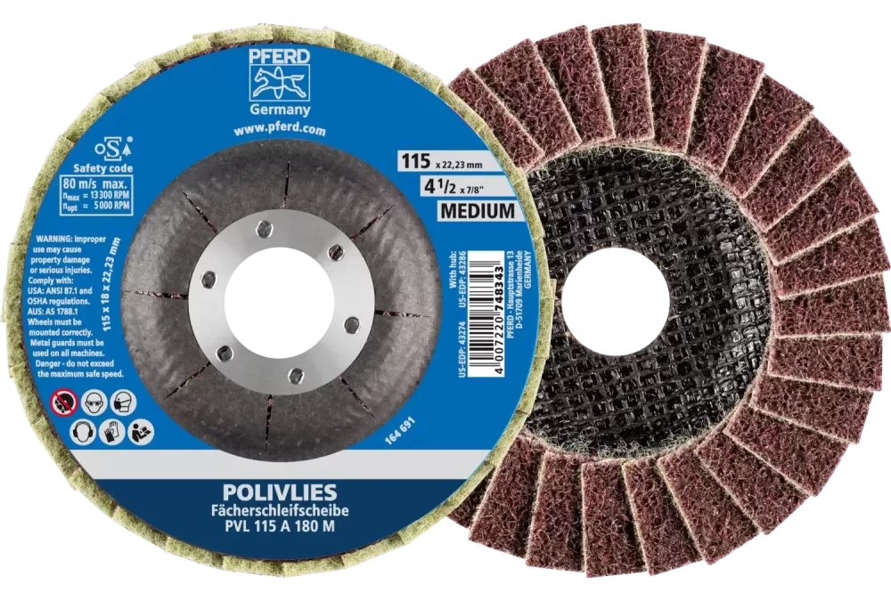 Ściernica włókninowa POLIVLIES PVL Korund Ø115 mm otwór 22,23 mm A180M do szlifu dokładnego