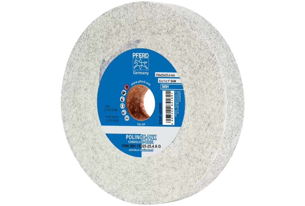 Ściernice kompaktowe POLINOX PNK to włóknina nawinięta wokół rdzenia, a jej warstwy połączono pianką. Pianka stanowi wsparcie zwojów włókniny. Skutkiem tego jest wydłużona żywotność narzędzia w porównaniu z narzędziami niesklejonymi pianką. Dzięki temu specjalnemu wiązaniu powstają produkty z włókniny, które są idealne do prac wykończeniowych na powierzchniach, gwarantując jednocześnie wysoką wydajność usuwania i długą żywotność. Właściwości te są szczególnie widoczne w przypadku odgratowywania, wyrównywania, drobnej obróbki i polerowania miękkich metali, stali stopowych i wysokostopowych oraz stopów tytanu. Ściernice mogą być używane na stacjonarnych maszynach i blokach szlifierskich, ale również na przenośnych napędach narzędziowych, takich jak szlifierki proste. Można zmieniać geometrię narzędzia.|Ściernice mogą być używane na stacjonarnych maszynach i blokach szlifierskich, ale również na przenośnych napędach narzędziowych, takich jak szlifierki proste. Poza tym ściernice mogą być dopasowane do geometrii specjalnego narzędzia.