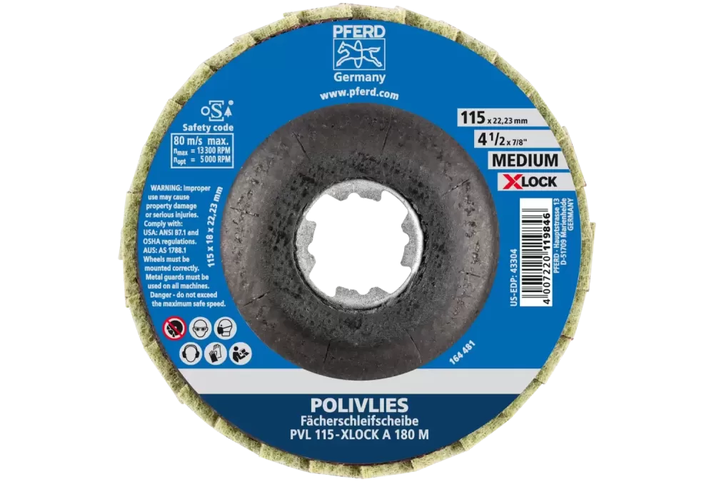 Ściernica włókninowa POLIVLIES PVL Korund Ø115 mm otwór 22,23 mm / X-LOCK A180M do szlifu dokładnego