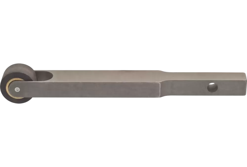 Ramię przystawki szlifierki taśmowej o rozmiarze rolki 12 × 19 mm do taśm o długości 520 i 610 mm i szerokości 12 lub 16 mm.