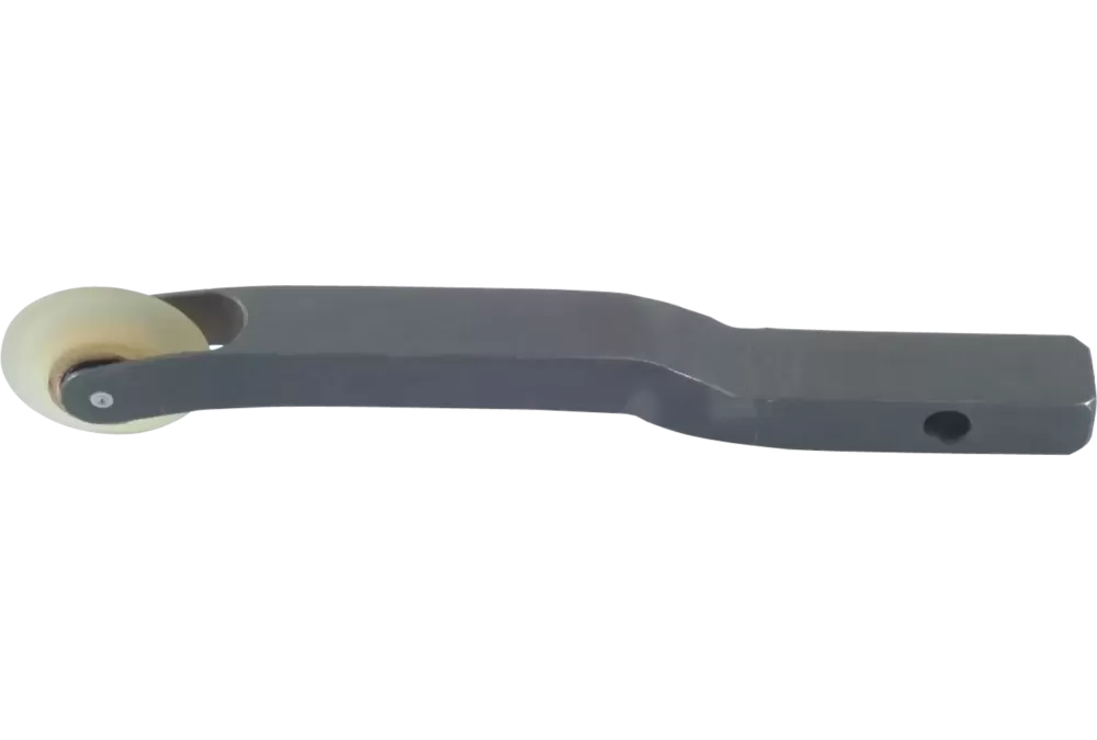 Ramię przystawki szlifierki taśmowej z rolką stożkową (szerokość 1 mm) o rozmiarze 9 × 25 mm do taśm o długości 520 i 610 mm i szerokości 3, 6, 9 lub 12 mm.
