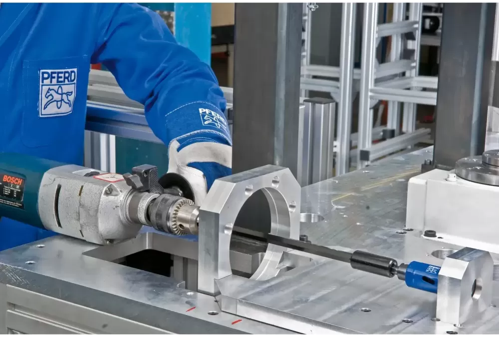 - Komfortowe centrowanie i prowadzenie otwornicy osiąga się za pomocą wiertła centrującego HSS.