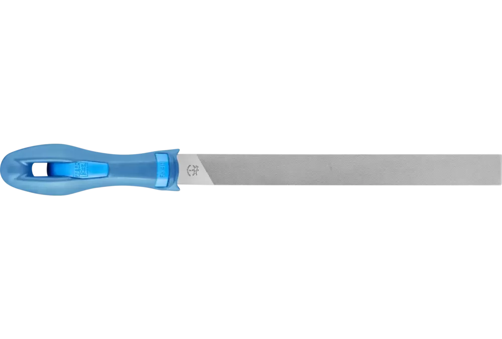 Pilnik prostokątny z chwytem i nacięciem z czterech stron. Kształt E wg normy DIN 7262.