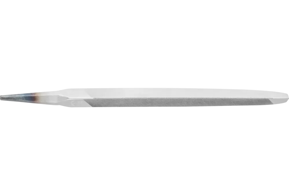 Trójkątne, szpiczasty pilnik z chwytem. Chwyt na trzech stronach, krawędzie zaokrąglone. Kształt D wg normy DIN 7262. Nadaje się do ostrzenia tarcz pił tarczowych.