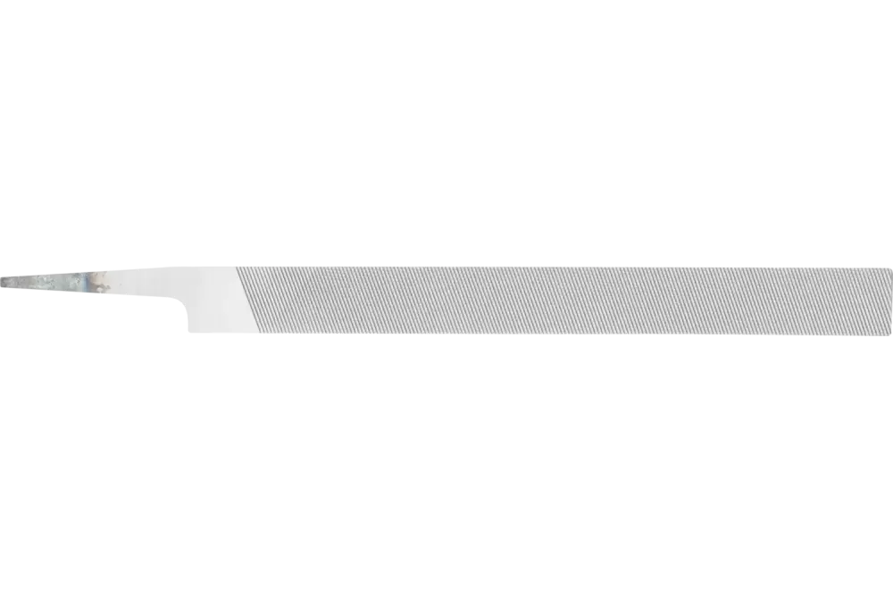 Pilnik trójkątny o profilu nożowym, z chwytem i nacięciami po obu stronach oraz na wąskich krawędziach. Wykonanie z chwytem. Kształt G wg normy DIN 7261. Do obróbki ostrych kształtów ostrych i wąskich geometrii.