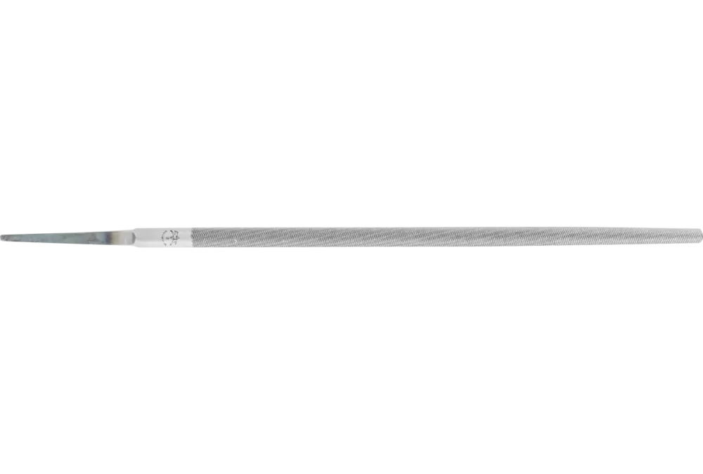 Pilnik okrągły, z nacięciami dookoła. Wykonanie z chwytem. Kształt F wg normy DIN 7261. Do obróbki profili okrągłych i półokrągłych.