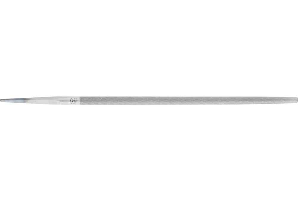 Pilnik okrągły, z nacięciami dookoła. Wykonanie z chwytem. Kształt F wg normy DIN 7261. Do obróbki profili okrągłych i półokrągłych.