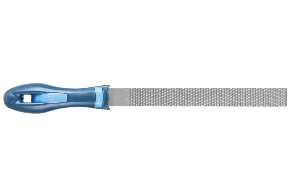 Pilnik prostokątny z ergonomicznym chwytem i różnymi nacięciami z dwóch stron. Strona przednia – nacięcie krzyżowe 1 – do zdzierania, strona tylna – nacięcie raszplowe 1 do ostrzenia, jedna strona bez nacięć.