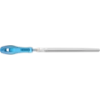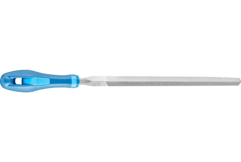 Pilnik trójkątny, ostro zakończony, z nacięciami z trzech stron. Wykonanie z chwytem. Kształt C wg normy DIN 7261. Do obróbki profili skośnych.
