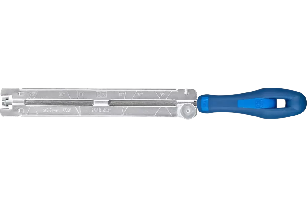 Asortyment produktów firmy PFERD obejmuje urządzenia do ostrzenia łańcuchów pił łańcuchowych zarówno manualnego, jak również maszynowego. Urządzenia do ostrzenia firmy PFERD wyróżniają się długą żywotnością oraz prostą obsługą., Przyrządy PFERD do ostrzenia łańcuchów pił przeznaczone są do ręcznego ostrzenia łańcuchów pił łańcuchowych. Ostrzenie ręczne jest bardziej ekonomiczne i zapewnia większą trwałość łańcucha niż ostrzenie maszynowe, a przy wczesnym ostrzeniu wydłuża żywotność łańcucha piły łańcuchowej., Poręczny przymiar CHAIN SHARP CS-SL łączy pilnik do ostrzenia pił łańcuchowych i miernik w jednym ergonomicznym narzędziu. Jednolite ułożenie pilników w przyrządzie ułatwia ostrzenie zębów tnących oraz zapobiega uszkodzeniu poszczególnych elementów łańcucha piły łańcuchowej. Miernik umożliwia jednakowe rezultaty pracy podczas każdego procesu, pozwalając ostrzyć pod właściwym kątem.