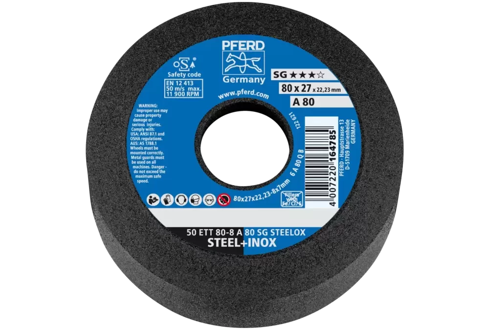 Ściernica garnkowa ETT 80 × 8x22,23 mm A80 linia wydajna SG STEELOX do stali/stali nierdzewnej