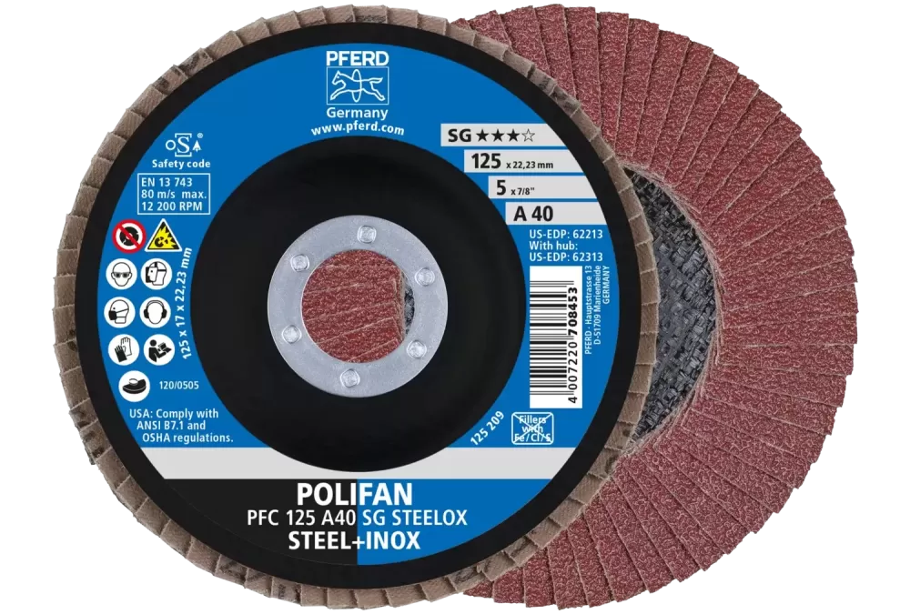 Ściernica listkowa POLIFAN PFC 125 × 22,23 mm stożkowa A40 SG STEELOX stal/stal nierdzewna