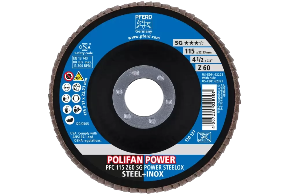 Ściernica listkowa POLIFAN POWER PFC 115 × 22,23 mm stożkowa Z60 SG STEELOX stal/stal nierdzewna