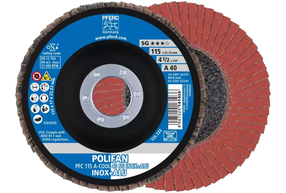 Ściernica listkowa POLIFAN o szczególnie chłodnym szlifie, do obróbki materiałów źle przewodzących ciepło, jak stal nierdzewna (INOX) i aluminium.