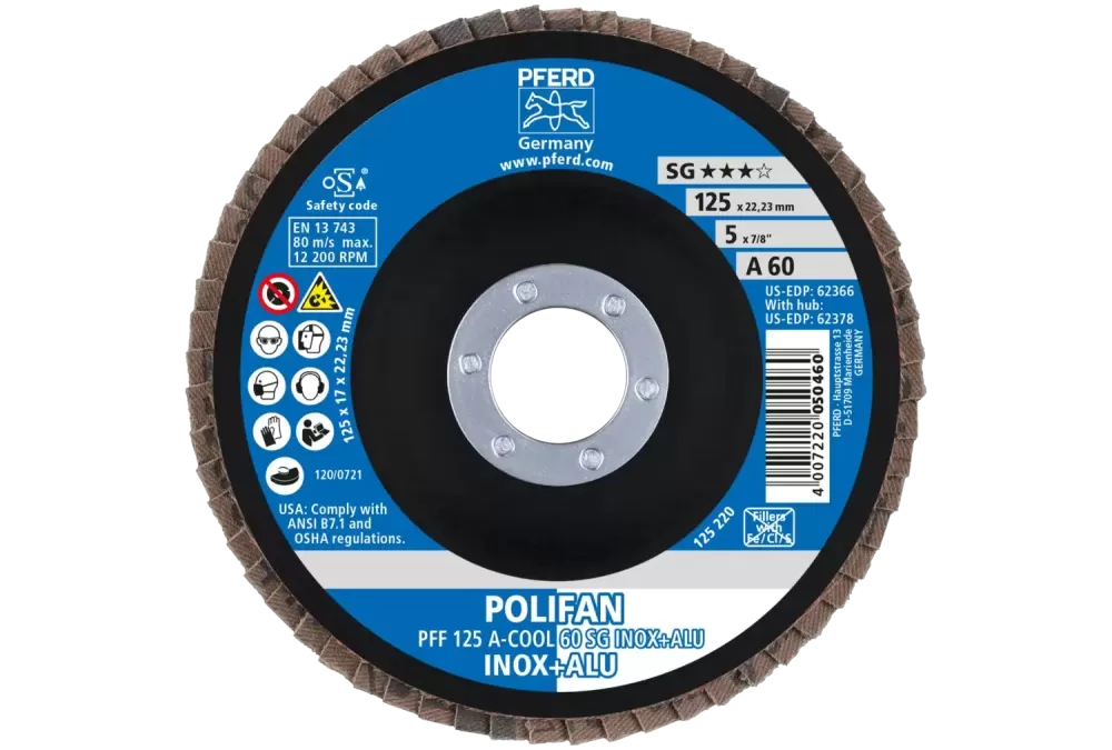 Ściernica listkowa POLIFAN PFF 125 × 22,23 mm płaska A-COOL 60 SG INOX+ALU stal nierdzewna/aluminium