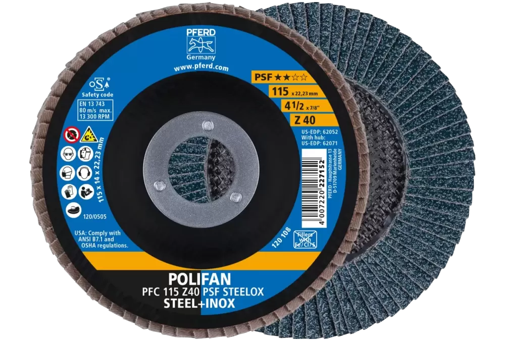 Ściernica listkowa POLIFAN do obróbki stali i stali nierdzewnej (INOX) o agresywnych właściwościach skrawania i długiej żywotności.