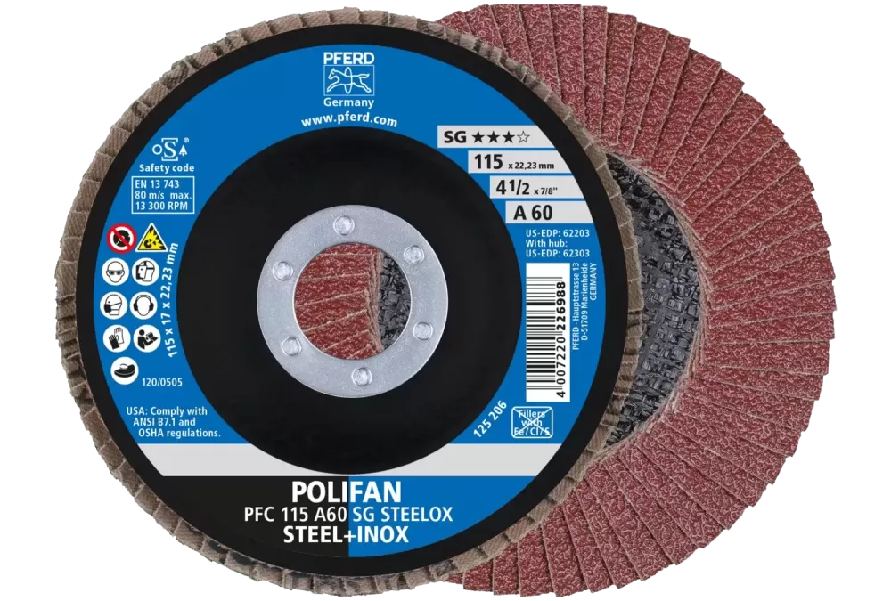 Ściernica listkowa POLIFAN do obróbki stali i stali nierdzewnej (INOX) o wysokiej wydajności szlifowania i długiej żywotności.
