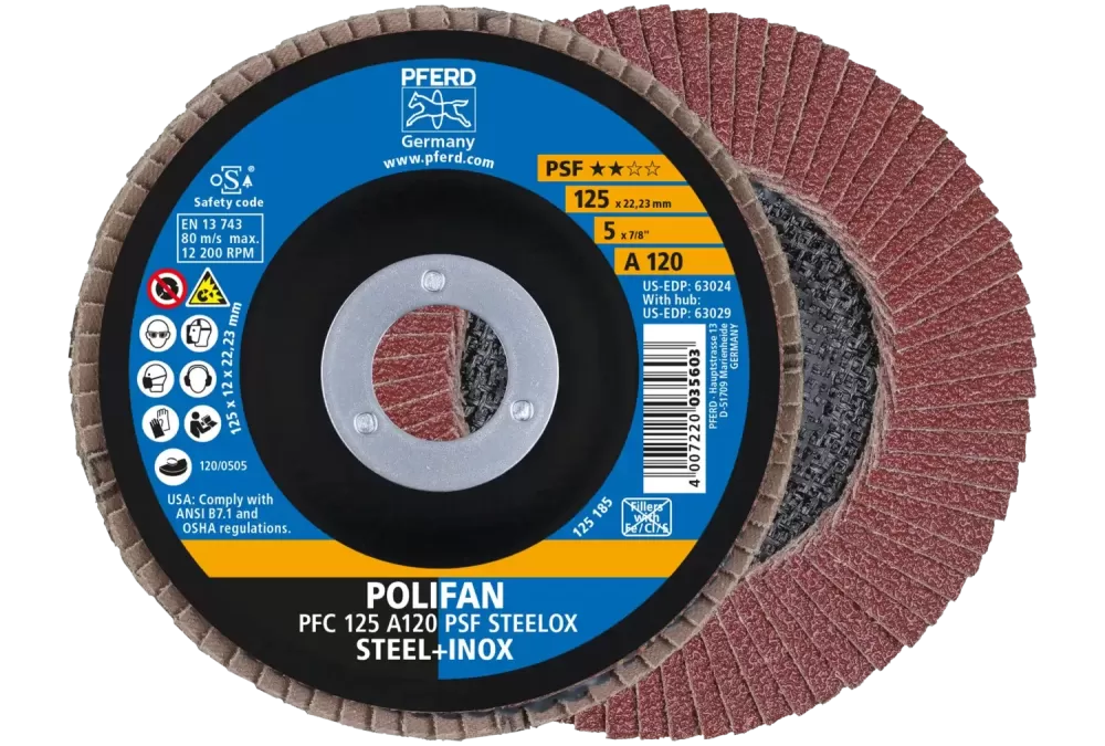 Ściernica listkowa POLIFAN do obróbki stali i stali nierdzewnej (INOX) o wysokiej wydajności szlifowania i długiej żywotności.