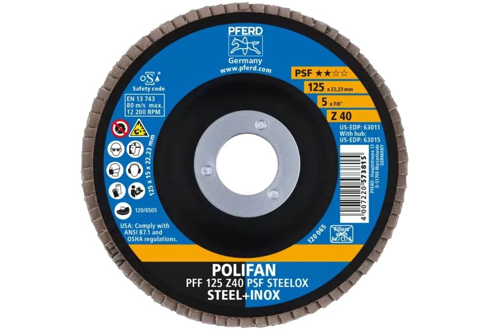 Ściernica listkowa POLIFAN do obróbki stali i stali nierdzewnej (INOX) o agresywnych właściwościach skrawania i długiej żywotności.
