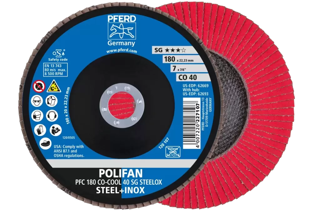 Ściernica listkowa POLIFAN o szczególnie chłodnym szlifie, do pracy z trudno obrabialnymi materiałami, takimi jak stal wysokostopowa i stal nierdzewna, stopy na bazie niklu lub tytanu.