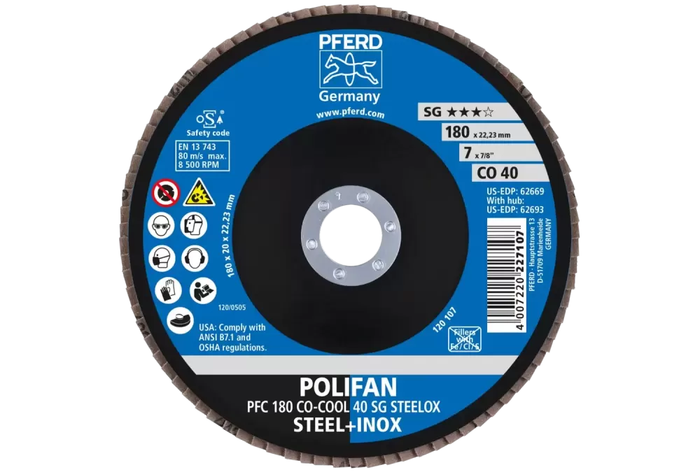 Ściernica listkowa POLIFAN PFC 180 × 22,23 mm stożkowa CO-COOL 40 SG STEELOX stal/stal nierdzewna