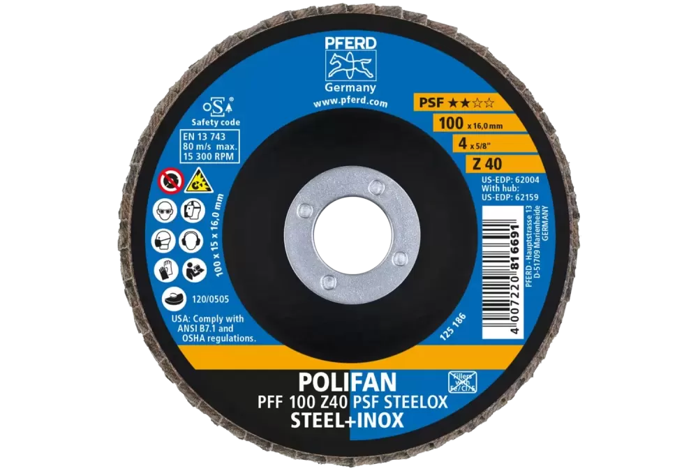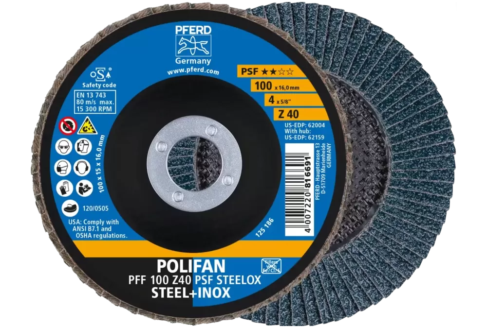 Ściernica listkowa POLIFAN PFF 100 × 16 mm płaska Z40 linia uniwersalna PSF STEELOX stal/stal nierdzewna