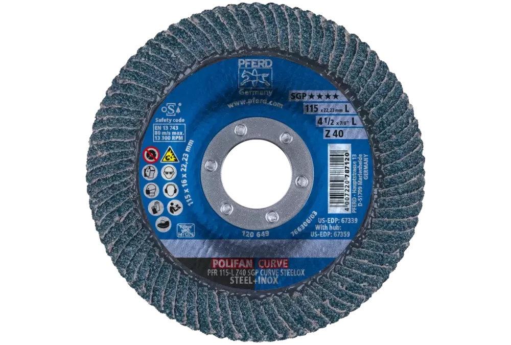 Ściernica listkowa POLIFAN CURVE PFR 115 × 22,23 mm szerokość L Z40 SGP STEELOX do stali/stali nierdzewnej