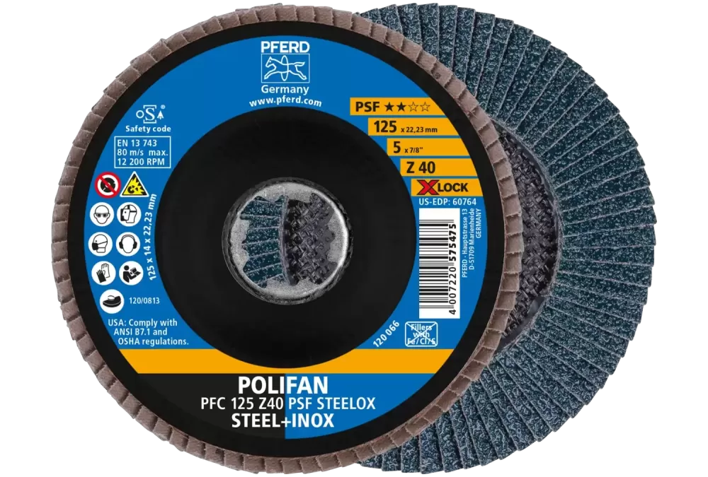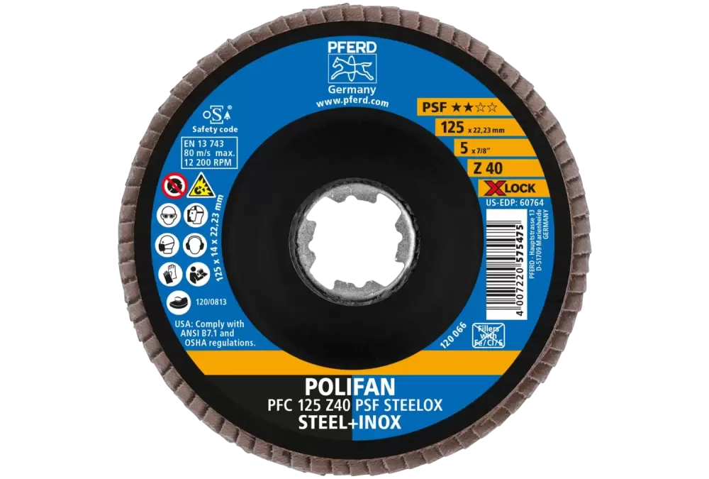 Ściernica listkowa POLIFAN PFC 125 mm X-LOCK stożkowa Z40 linia uniwersalna PSF STEELOX stal/stal nierdzewna
