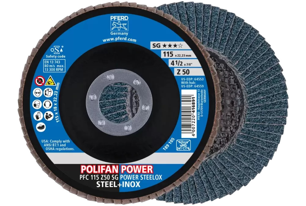 Szeroki program produktów linii wydajnej SG oferuje największą liczbę narzędzi odpowiednich do każdego zastosowania i każdego materiału. Narzędzia linii wydajnej SG osiągają najlepsze wyniki przy najwyższej wydajności., Ściernica listkowa POLIFAN POWER przekonuje wysoką wydajnością skrawania i wyjątkową żywotnością, przez co pozwala uzyskać najwyższą opłacalność. Jest najlepszą ściernicą listkową do obróbki stali., Dla najbardziej wymagających użytkowników stworzono ściernicę listkową POLIFAN POWER, która natychmiast stała się narzędziem pierwszego wyboru do obróbki stali. Uniwersalna ściernica listkowa POLIFAN charakteryzuje się optymalnym stosunkiem wyjątkowej żywotności i maksymalnej wydajności szlifowania.