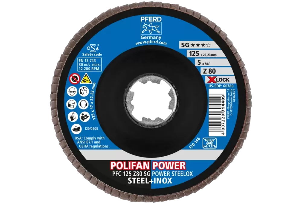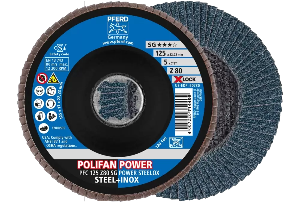 Ściernica listkowa POLIFAN POWER PFC 125 mm X-LOCK stożkowa Z80 SG STEELOX stal/stal nierdzewna