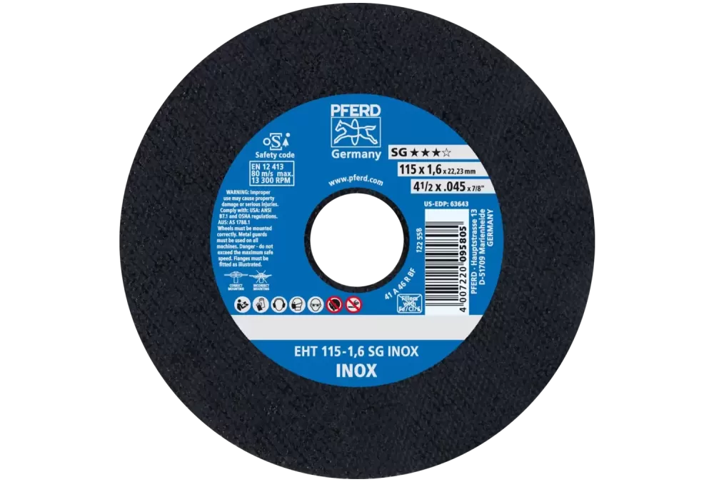 Użytkownicy na całym świecie ufają Niebieskim i wybierają PFERD. Asortyment PFERD oferuje cienkie ściernice tarczowe do cięcia w wielu różnych wykonaniach, dzięki czemu do każdego zastosowania dostępne jest odpowiednie narzędzie – zoptymalizowane pod względem ergonomii, wydajne i zapewniające najwyższe bezpieczeństwo pracy. Cienkie ściernice tarczowe do cięcia firmy PFERD charakteryzują się specjalnym składem spoiwa. Intensywne prace badawczo-rozwojowe oraz ukierunkowane wdrożenia w najnowocześniejszych zakładach produkcyjnych gwarantują wysokie standardy jakości i bezpieczeństwa firmy PFERD.