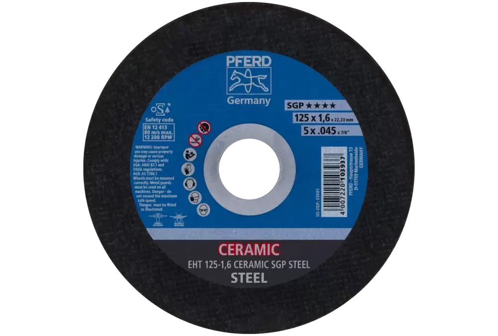 Ściernica tarczowa do cięcia EHT 125 × 1,6 × 22,23 mm prosta CERAMIC linia specjalna SGP STEEL do stali