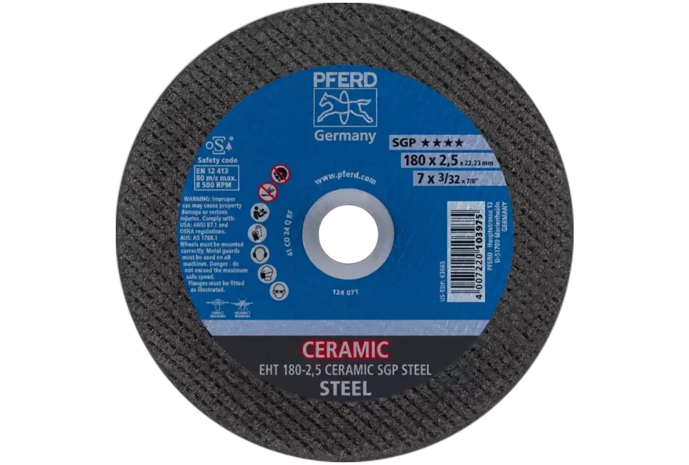 Ściernica tarczowa do cięcia EHT 180 × 2,5 × 22,23 mm prosta CERAMIC linia specjalna SGP STEEL do stali
