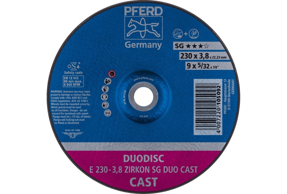 Tarcza DUODISC to rozwiązanie do bezpiecznego cięcia i szlifowania jednym narzędziem w zastosowaniach zgrubnych w odlewniach i zakładach obróbki metali. Spełnia wszelkie normy EN 12413 dla tarcz do cięcia i szlifowania.