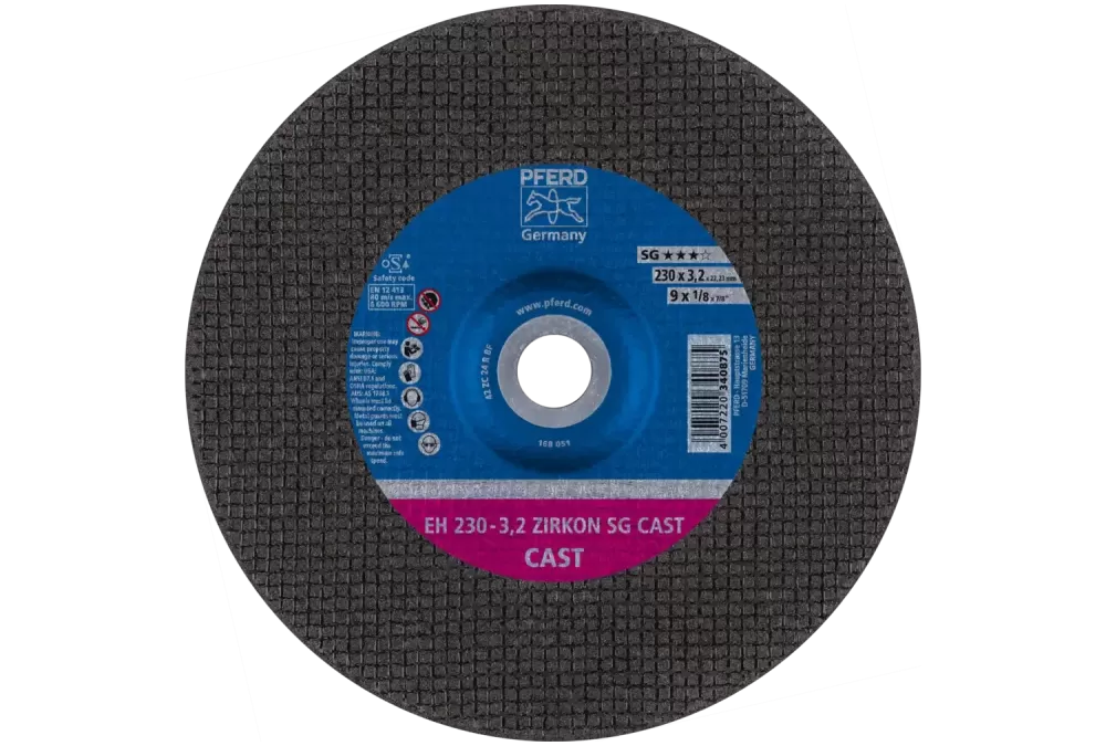 Do bardzo ciężkich prac w odlewniach PFERD opracował ściernice tarczowe do cięcia, odpowiadające wysokim standardom bezpieczeństwa i jakości. Są one zoptymalizowane pod kątem zastosowania na pneumatycznych szlifierkach kątowych z silnikiem turbinowym oraz szlifierkach kątowych wysokiej częstotliwości.