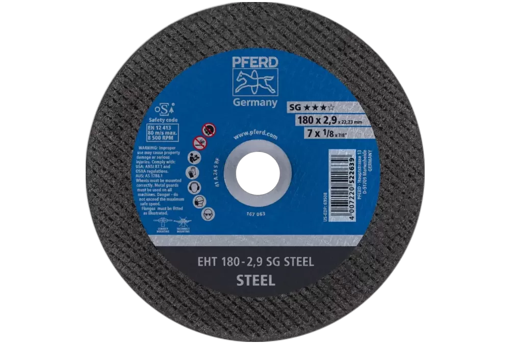 Ściernica tarczowa do cięcia EHT 180 × 2,9 × 22,23 mm prosta linia wydajna SG STEEL do stali