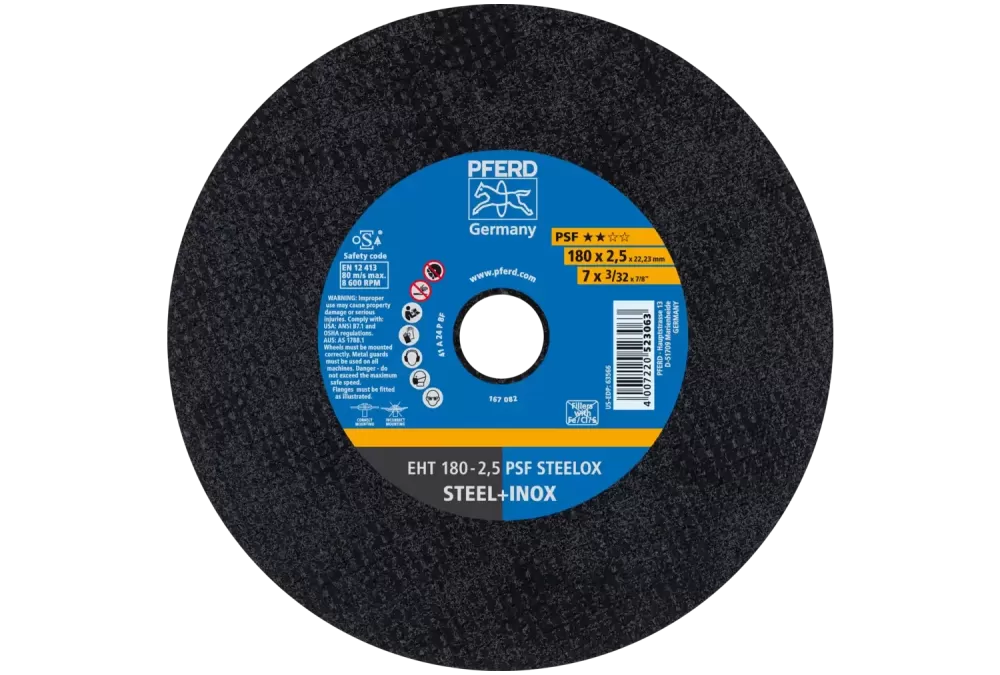 Ściernica tarczowa do cięcia EHT 180 × 2,5 × 22,23 mm prosta linia uniwersalna PSF STEELOX do stali/stali szlachetnej